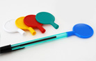 手に持つグリップ部分がまるでラディッシュのような形状で、すごく持ちやすいボールペン。乳白の軸部分に濃い色で名入れしても良し、羽子板のような形のクリップ部分に白色でワンポイントマークを印刷しても個性的なノベルティになります。ポップでかわいいデザインなので、若い女性向けアパレル、美容院などのショップ粗品としても人気です。